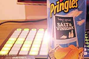Just added some ‘percussion’ using a tube of pringles. I think the fact that this tube had just been found in the garage, lost to the world, had a dramatic effect on the timbre of the tube. I think the mice may have given the tube a lighter, more sprightly tone by pissing on it!